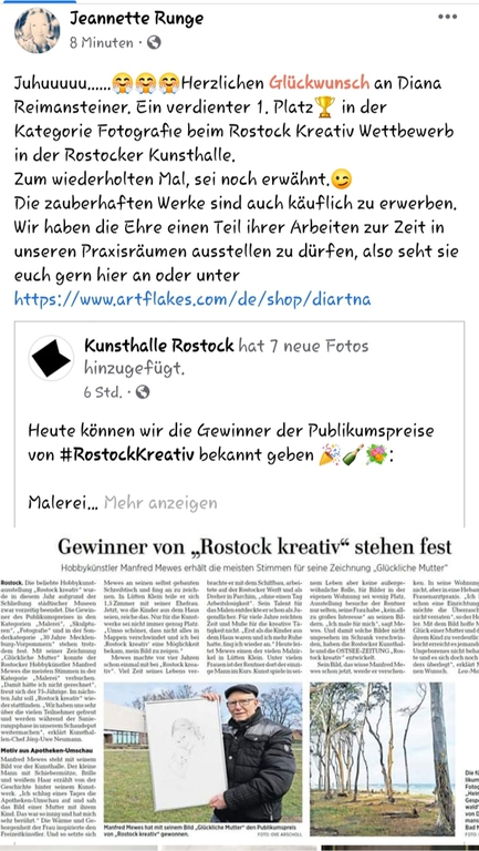 Ausstellungen: Kunsthalle Rostock, Kunsthof Bad Doberan, Kursaal Bad Malente, Gut Helmstorf, Ausstellungen in Praxisräumen, AtelierTage Holsteinische Schweiz, LEBENSART Messe Torhaus
